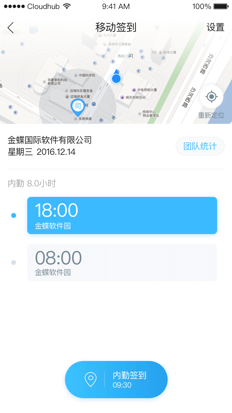 上班时间到公司打开云之家就能签到成功